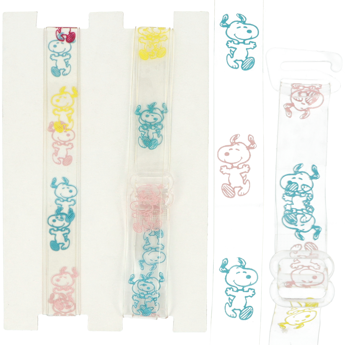 Silikonowe ramiączka do biustonosza, kolor bezbarwny z plastikowymi zaczepami, ozdobione kolorowymi pieskami.