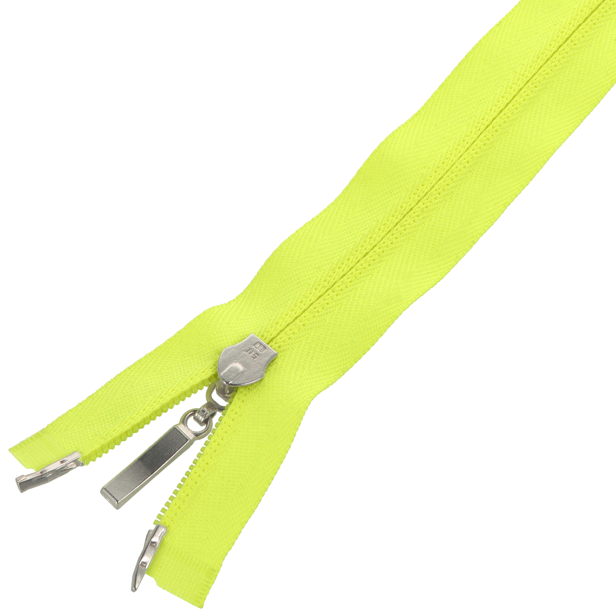 Zamek spirala #5 rozdzielczy dwusuwakowy góra dół 55cm ozdobny kolor żółty odblaskowy